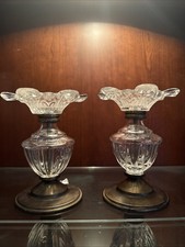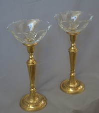Pair of Vintage Crystal Candlesticks on Brass Bases – Art Glass Style