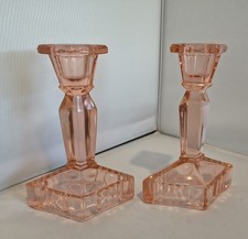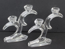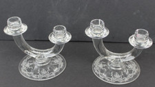 1940s Vintage Art Deco Antique Candle Holder Candlestick Set Heisey Glass