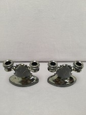2 Antique Smith Glass Black Dual Candelabra Candleholders 4.5"T Very Unusual