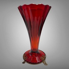 Vintage 1935 Fenton Glass Ruby Red Glass Sheffield Trumpet Vase Ormolu Base