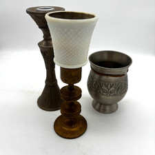 Antique Bronze French Candlestick, Vintage Hobnail Milk Glass Bronze, Pewter Cup