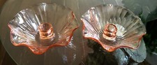 2 Vintage Art Deco Style Peach Glass Candle Holders