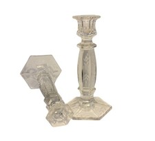Vintage Antique Glass Taper Candle Holders Candlesticks Pair of 2 Clear 7" Tall