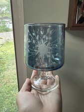 Blue Etched Glass Floral Glass Holder Vintage Item RARE FIND