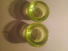 2 Antique Green Uranium Glass Candleholders Frosted Glass 1.5"T Very Unusual