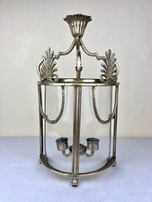 Vintage Antique Brass Cherub footed stand crackle glass insert tea light holder