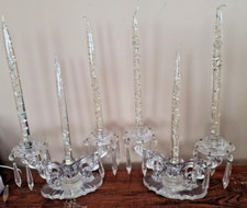 2 glass candelabra clear glass vintage antique +6 "candles" +4 bobeches +prisms