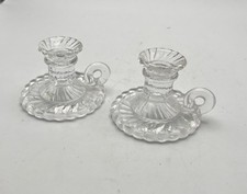 Antique Vintage Pair of Crystal Glass Candlestick Holders 3.5" x 2.5"