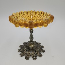 Vintage Antique brass orange bubble glass Candle Holder 5" bowl compote