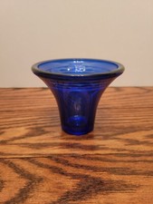 Vintage Cobalt Blue Glass Candle Holder Or Vase Embossed In. Unique Antique 3.5"