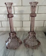 Vintage Pair Lavender Pink Purple Pressed Glass Candlesticks 10'' High Antique