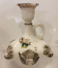 Antique Vintage Fired on Painted Milk Glass Chamberstick Scenic