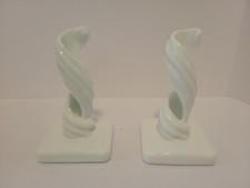 Antique Milk Glass Spiral Candle Holders Sticks Pair Art Deco Bohemian Vintage