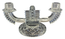 Vintage Antique Art Deco Bohemian Crystal Double Candlestick Holder Glass Clear