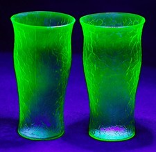 ANTIQUE L.E. Smith By Cracky Uranium Glass Set of 2 Made in USA 1920's