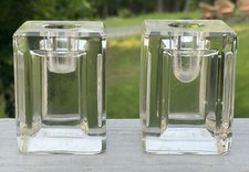 Pair Antique Vintage Retro UV Cubist Atomic Deco Square Cambridge Glass Candles