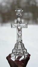 Antique Mid-19th Century Sandwich Glass Pressed Glass Crucifix Candlestick