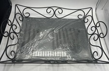 Vintage PartyLite Antique Brass Tray with Glass Insert Retired P8356T