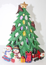 Vintage Atico Resin Christmas Tree Votive Candle Holder Toys Birds 9" T X 6.5" W