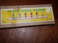 Vintage 1957 Mini Toy Soldier Candle Holders By Shackman Red, Yellow, Blue qty 5