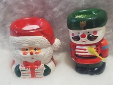 Lot Of 2 Vintage Ceramic Votive Holders: Santa & Toy Soldier
