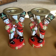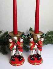 2 Vintage Partylite Christmas Toy Soldier Taper Candle Holders P7704
