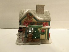 Vintage Ceramic Snow Covered House Candle Holder Toy Shop 5.5" Tall