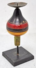 Antique Wooden Spinning Top Candle Holder Stand Original Old Lacquer Painted