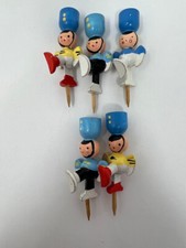 Vtg Toy Soldiers Christmas Cake Toppers Wooden Candle Holders Picks Japan MCM