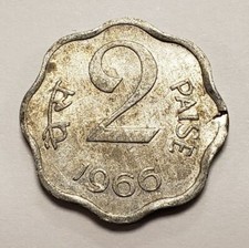 1966 India 2 Paise - Error - Struck on Defective Planchet - SKU-F5857