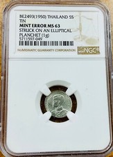 Thailand Elliptical clip ERROR date 2493 (1950) NGC MS63 small tin coin Rare