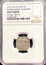 Ceylon 5 Cents Mint Error Coin 1912-1926 Unstruck Blank Planchet NGC Certified