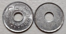 French Indochina 5 Cents 1943 (a) Error, Blank Planchet, 0.7 grams