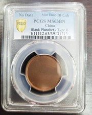 China coin Mint error 10cash Blank Planchet Type II PCGS MS63BN(very rare )