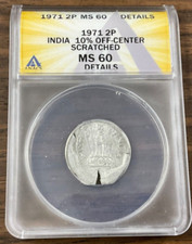 1971 - 2 Paise India - 10% Off-Center Error - ANACS MS60 details - scratched