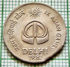 Mint Error - Clipped Planchet INDIA Republic 1982 25 Paise IX Asian Games Delhi