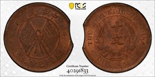 1907 China Kiangnan 10 Cash Copper Coin Planchet Flaw Error- PCGS AU Details