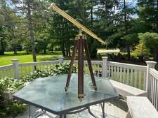 Vintage Brass Nautical Telescope ~ 39” Long, Tripod Mount, Sliding Tubes, Works
