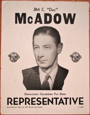 Missouri State House 1950 Political Advertising Poster/Sign: Jim C. 'Doc' McAdow