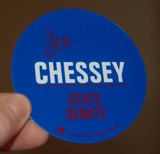 VINTAGE JOE CHESSEY STATE SENATE POLITICAL ADVERTISING PLAQUE METAL TAG SIGN