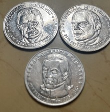 3 Vintage Commemorative Prize Toy President Coins, 11th, 25th, 26th Unknown Make