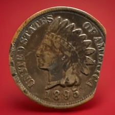 1895 Indian Head Cent Penny- Fine/VF Details, Clipped Planchet Error 214
