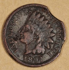 1897 Indian Head Cent. Error. Double Clipped Planchet. 194766