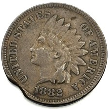 1882 Indian Cent Penny Fine Condition " Rare Error Coin Clipped Planchet" 1376