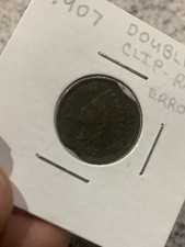 1907 Indian Head Cent Penny Double Clipped Planchet Error Coin Indian Penny