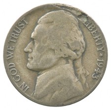 1943-P United States Jefferson Nickel 5C (War Cent, Lamination Error)