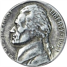 1944 P JEFFERSON NICKEL Major LAMINATED PLANCHET ERROR Circulated