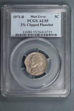 1972-D 5C JEFFERSON NICKEL PCGS AU55 ERROR CLIPPED PLANCHET 2% OFF SLAB-135