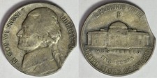 1944 P 5C Jefferson War Nickel Clipped Planchet