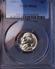 Jefferson Nickel 1943 S PCGS MS 64++ Silver Mint Error Planchet Issue Rare Find